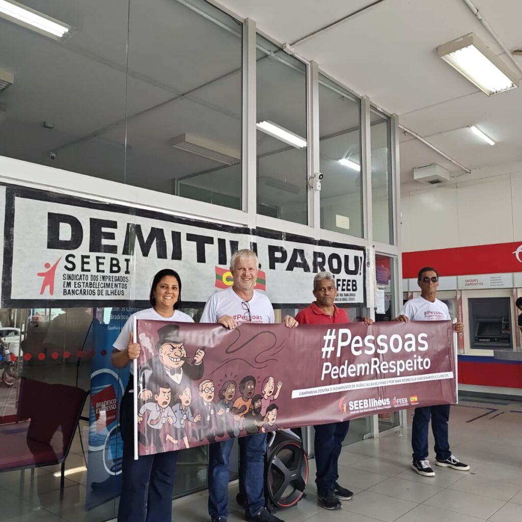 O Sindicato dos Bancários de Ilhéus e Região denuncia mais um episódio preocupante em agência do Bradesco. Em menos de 30 dias, dois funcionários foram demitidos da agência do Bradesco em Canavieiras, sob a já conhecida justificativa de “performance”.